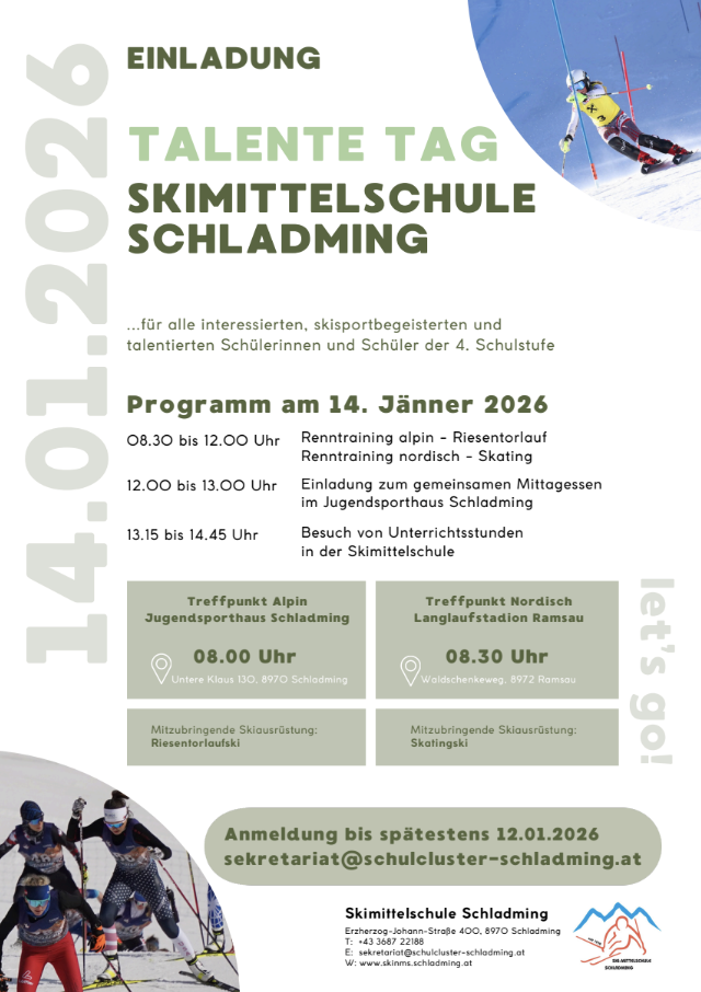 Schöne Ferien wünscht die Ski-Mittelschule Schladming.
